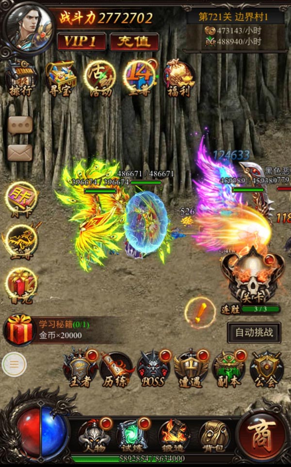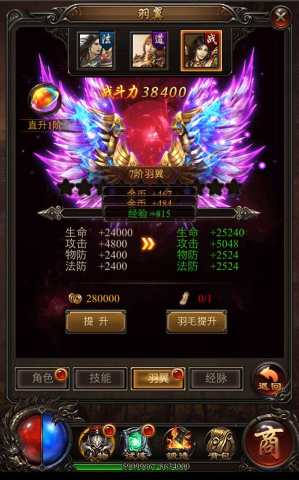 新手礼包 :羽毛(20)、强化石(100)、金币(50W)
